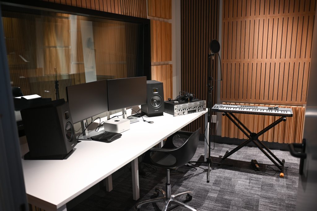 Está equipado con las últimas tecnologías y cuenta con 250 computadoras de última generación, instrumentos musicales como guitarra, batería, piano y bajo, equipamiento para moderar producciones, ecualizadores digitales, cabinas de sonido, entre otros equipamientos.